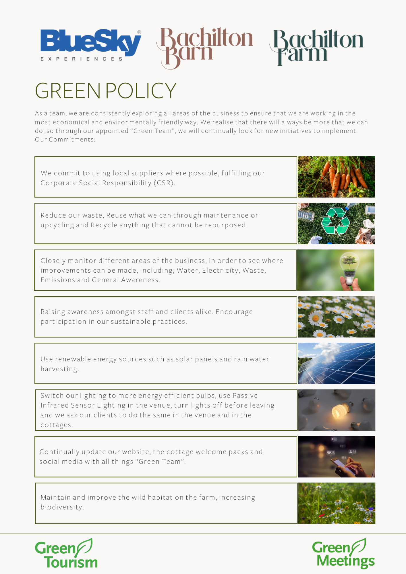 This policy reflects our commitment to continuous improvement, thoughtful action and creating a more sustainable future for Bachilton Barn.